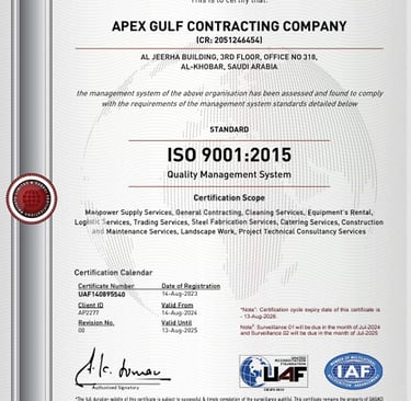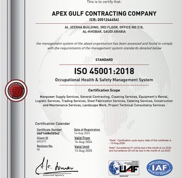 Apex Gulf Contracting Company is dedicated to delivering top-notch trading and contracting services across Saudi Arabia, ensuring quality and reliability in every project we undertake.