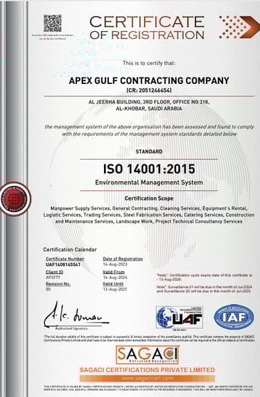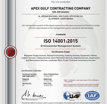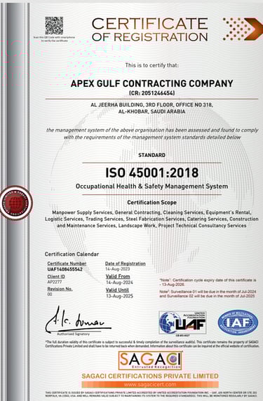 Apex Al Khalij, established in Al-Khobar in 1420 AH, is driven by a clear vision to become one of the Kingdom of Saudi Arabia’s leading national companies. AGCC operates across contracting, trading, manpower, consultancy, and rental equipment, delivering services to high standards with a strong commitment to quality, accuracy, and customer satisfaction.